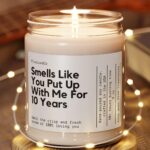 Personalized Tenth Anniversary Gift Smells Like You Put Up with Me Funny Candle Anniversary Gift for Him or Her Romantic and Sarcastic Gift